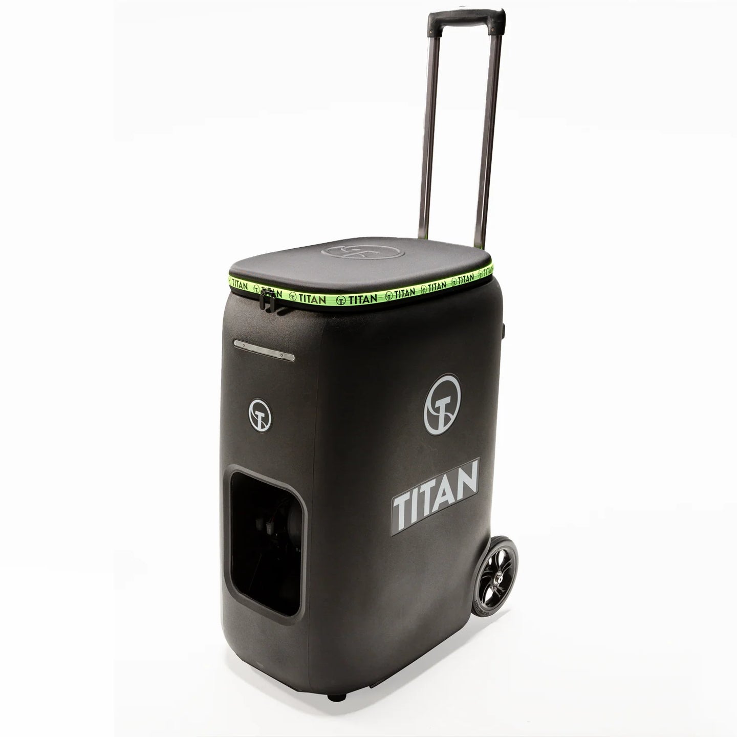 Move your gear effortlessly with Titan’s integrated, all-in-one hopper design.