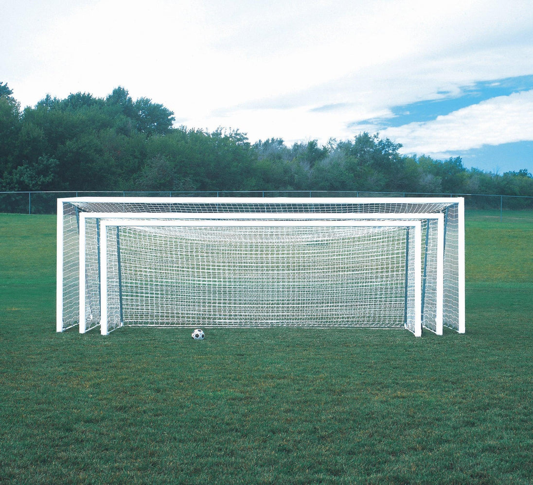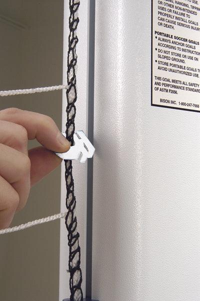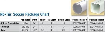 Standard No-Tip features include extended rear goal depth, a competition-grade net, Bison’s QwikTrack net attachment system, a net storage bag, and a super-thick, textured white powder-coated finish. A newly added net retention bar keeps the net clear of the rolling ballast wheels during transport. Multiple aluminum opening extrusion profiles and goal sizes are available; refer to the sizing chart for options.
